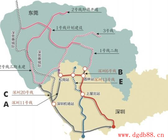 如今東莞與深圳之間一共有五條地鐵線路連接,其中包括6號線與東莞1號線連接方案;11號線與東莞3號線;深圳20號線與東莞2號線;深圳10號線(連接福田、龍崗)穿越東莞鳳崗鎮線站位方案;深圳13號線經南山、光明新區至東莞鬆山湖的線路方案。由此一來帝博矽膠製品公司的小夥伴到深圳有不用那麼麻煩坐公交車,一個地鐵直接到目的地,目前的情況在今年開通的二號線於2010年開工建設,設備安裝完成90%,車站裝修完成85%,列車全部運抵車輛段,計劃2015年12月30日試運行,2016年5月正式開通試運營。其它路線依次進行中!