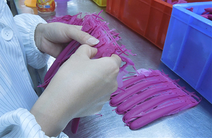 2、 除(chu)了(le)從(cong)矽(gui)膠(jiao)原(yuan)材(cai)料(liao)上(shang)麵(mian)有(you)影(ying)響(xiang)以(yi)外(wai)不(bu)夠(gou)透(tou)明(ming)的(de)原(yuan)因(yin)是(shi)模(mo)具(ju)的(de)麵(mian)部(bu)不(bu)夠(gou)光(guang)滑(hua)明(ming)顯(xian),所(suo)以(yi)采(cai)用(yong)電(dian)鍍(du)工(gong)藝(yi)將(jiang)霧(wu)麵(mian)模(mo)具(ju)做(zuo)成(cheng)反(fan)光(guang)模(mo)具(ju),表(biao)麵(mian)會(hui)更(geng)加(jia)清(qing)洗(xi),這(zhe)也(ye)是(shi)解(jie)決(jue)矽(gui)膠(jiao)勺(shao)不(bu)夠(gou)亮(liang)的(de)主(zhu)要(yao)原(yuan)因(yin)之(zhi)一(yi)!