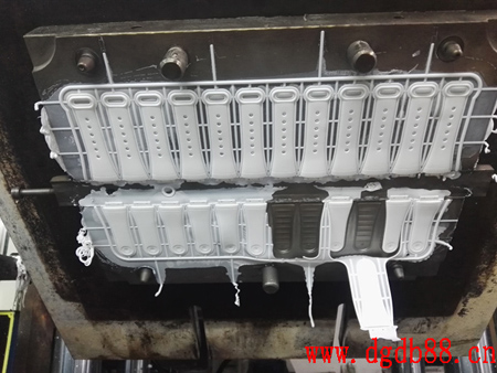 步驟2:加熱模具至180°後,上下兩片模具合並,膠狀的矽膠小條在高溫和壓力下,緊貼模具內壁表麵成型,100秒後成型完畢