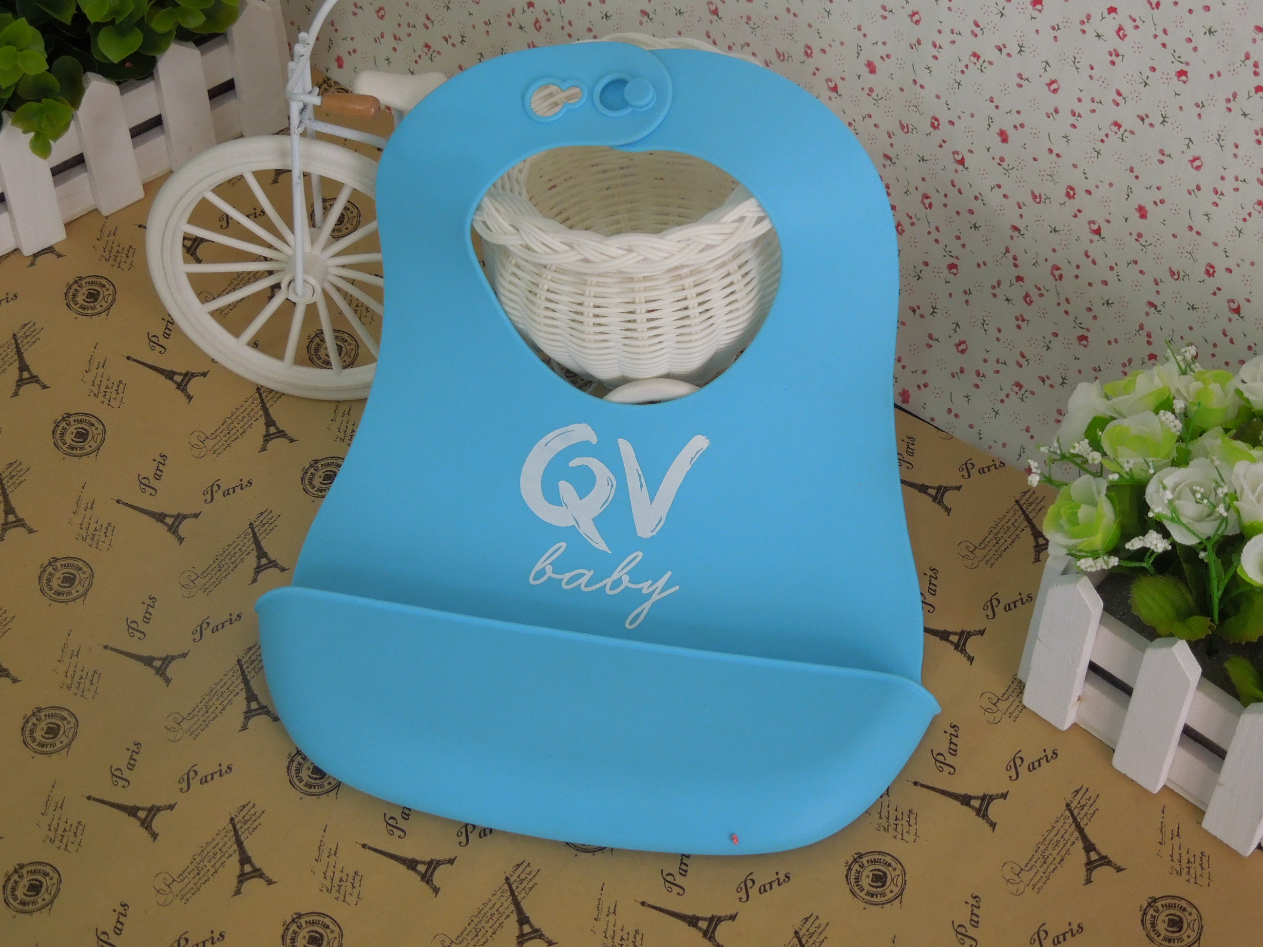 隨sui著zhe現xian在zai科ke技ji的de發fa達da和he現xian代dai很hen多duo工gong藝yi的de成cheng熟shu,很hen多duo傳chuan統tong的de棉mian布bu製zhi品pin,五wu金jin製zhi品pin,塑su膠jiao製zhi品pin以yi及ji更geng多duo的de生sheng活huo日ri用yong品pin,都dou已yi經jing逐zhu漸jian被bei以yi矽gui膠jiao為wei原yuan料liao代dai替ti生sheng產chan。設she計ji師shi們men以yi獨du特te的de創chuang意yi和he科ke技ji的de結jie合he,就jiu誕dan生sheng了le很hen多duo這zhe樣yang的de矽gui膠jiao製zhi品pin,而er矽gui膠jiao圍wei嘴zui就jiu是shi這zhe其qi中zhong的de一yi個ge款kuan,矽gui膠jiao圍wei嘴zui是shi用yong食shi品pin級ji矽gui膠jiao原yuan料liao高gao溫wen成cheng型xing,從cong原yuan料liao---煉膠---成cheng型xing,整zheng個ge加jia工gong過guo程cheng不bu添tian加jia任ren何he有you害hai物wu質zhi,所suo以yi生sheng產chan出chu的de產chan品pin是shi無wu毒du無wu味wei的de。產chan品pin柔rou軟ruan光guang滑hua,很hen方fang便bian清qing洗xi,寶bao寶bao的de口kou水shui從cong嘴zui裏li麵mian流liu出chu來lai的de時shi候hou,直zhi接jie掉diao到dao底di部bu的de兜dou兜dou裏li麵mian,不bu會hui弄nong髒zang衣yi服fu,一yi整zheng天tian都dou可ke以yi隻zhi用yong一yi個ge圍wei嘴zui,不bu用yong經jing常chang換huan下xia。而er清qing洗xi也ye很hen方fang便bian,隻zhi要yao將jiang係xi在zai脖bo子zi後hou麵mian的de紐niu扣kou解jie開kai即ji可ke解jie下xia圍wei嘴zui,然ran後hou直zhi接jie用yong清qing水shui衝chong洗xi,也ye可ke以yi高gao溫wen煮zhu水shui消xiao毒du,給gei寶bao寶bao們men一yi個ge健jian康kang的de環huan境jing。