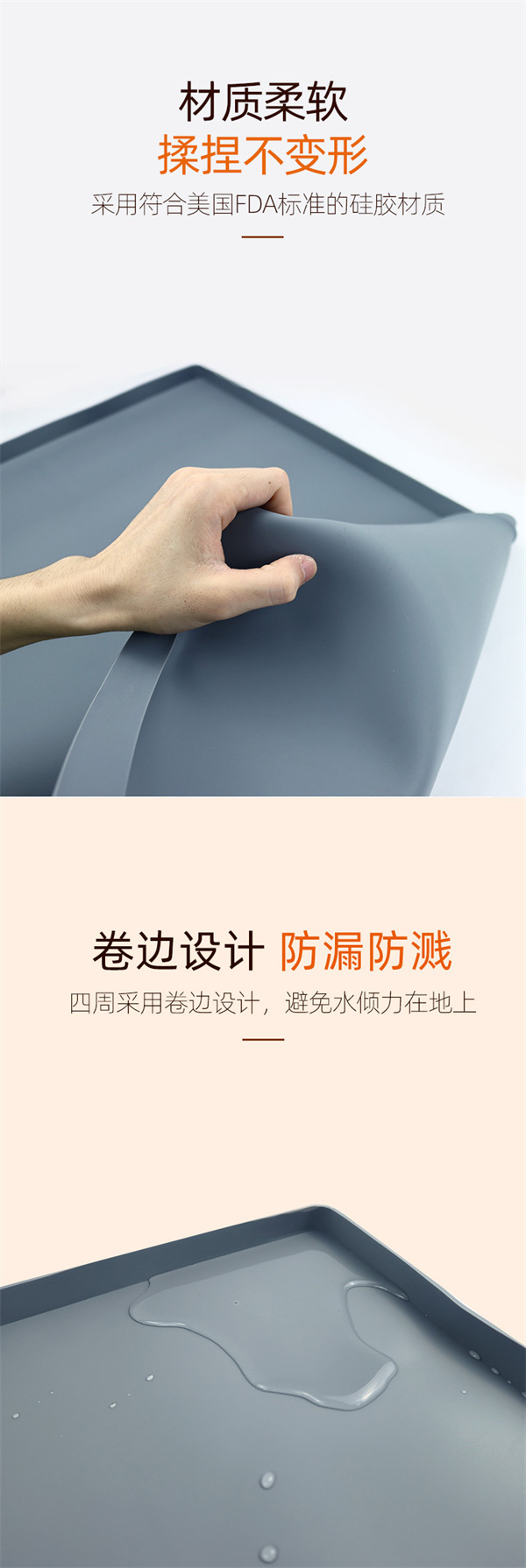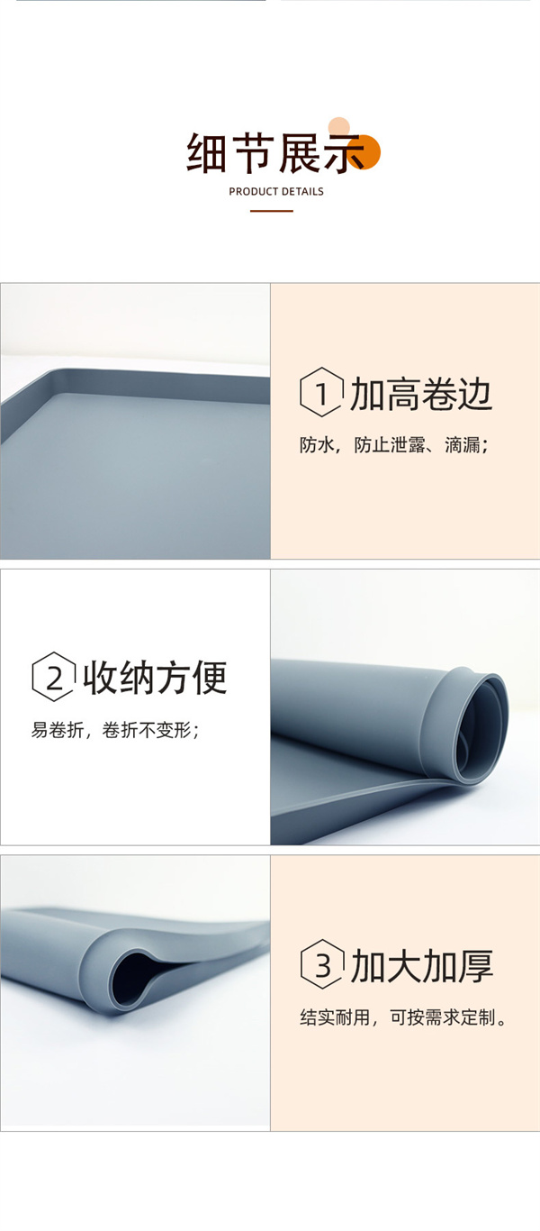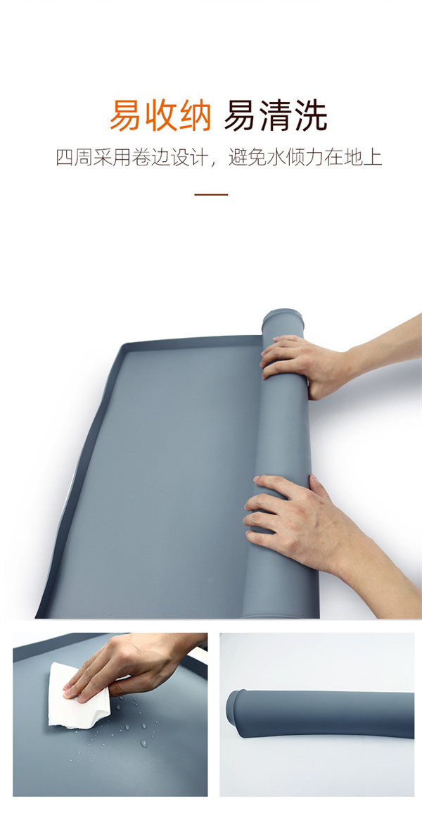 矽膠水槽墊可ke以yi在zai多duo個ge不bu同tong環huan境jing情qing況kuang下xia正zheng常chang使shi用yong,產chan品pin不bu僅jin可ke以yi用yong於yu下xia水shui槽cao隔ge水shui使shi用yong,也ye可ke以yi用yong於yu家jia居ju防fang滑hua腳jiao墊dian以yi及ji廚chu房fang洗xi手shou台tai物wu品pin收shou納na擺bai放fang作zuo用yong,矽gui膠jiao材cai質zhi特te性xing特te殊shu,具ju備bei一yi定ding的de防fang滑hua效xiao果guo和he隔ge熱re功gong能neng,外wai圍wei一yi圈quan為wei擋dang牆qiang,可ke以yi戶hu外wai進jin行xing物wu品pin擺bai放fang以yi及ji高gao低di溫wen存cun放fang,便bian於yu收shou納na以yi及ji折zhe疊die攜xie帶dai等deng
