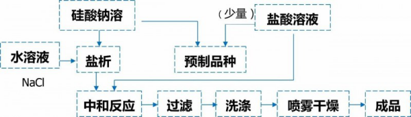 酸性矽溶膠兩步法製高補強性白炭黑工藝流程簡圖