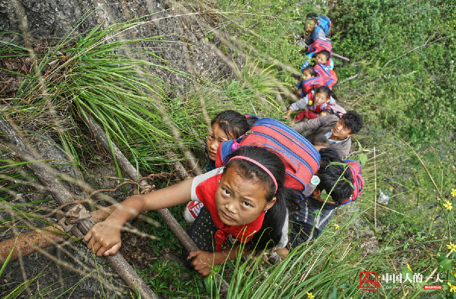 讀du書shu時shi每mei個ge孩hai子zi必bi須xu經jing曆li的de途tu徑jing,而er位wei於yu四si川chuan涼liang山shan這zhe個ge地di界jie彝yi族zu自zi治zhi州zhou昭zhao覺jiao縣xian支zhi爾er莫mo鄉xiang阿e土tu勒le爾er村cun,有you很hen多duo兒er童tong卻que因yin為wei環huan境jing影ying響xiang不bu能neng正zheng常chang讀du書shu,而er讀du書shu之zhi路lu要yao經jing過guo攀pan爬pa近jin一yi百bai米mi的de懸xuan崖ya才cai能neng走zou出chu大da山shan,這zhe個ge村cun莊zhuang每mei天tian都dou有you人ren因yin為wei爬pa上shang懸xuan崖ya而er摔shuai傷shang,根gen據ju當dang地di村cun了le解jie到dao這zhe條tiao懸xuan崖ya已yi經jing有you七qi八ba個ge人ren被bei摔shuai傷shang了le,而er更geng讓rang人ren擔dan心xin的de是shi每mei個ge月yue上shang學xue讀du書shu的de孩hai子zi們men、每(mei)次(ci)上(shang)學(xue)下(xia)山(shan)時(shi)都(dou)會(hui)給(gei)讓(rang)三(san)個(ge)成(cheng)人(ren)陪(pei)同(tong)十(shi)五(wu)個(ge)孩(hai)子(zi)一(yi)起(qi)爬(pa)懸(xuan)崖(ya)讀(du)書(shu),通(tong)常(chang)下(xia)山(shan)需(xu)要(yao)一(yi)個(ge)小(xiao)時(shi),上(shang)山(shan)需(xu)要(yao)一(yi)個(ge)半(ban)小(xiao)時(shi),而(er)外(wai)來(lai)人(ren)員(yuan)則(ze)需(xu)要(yao)這(zhe)個(ge)時(shi)間(jian)的(de)一(yi)倍(bei)左(zuo)右(you),這(zhe)也(ye)讓(rang)村(cun)裏(li)年(nian)齡(ling)小(xiao)一(yi)點(dian)的(de)沒(mei)有(you)去(qu)讀(du)書(shu)的(de)原(yuan)因(yin)。