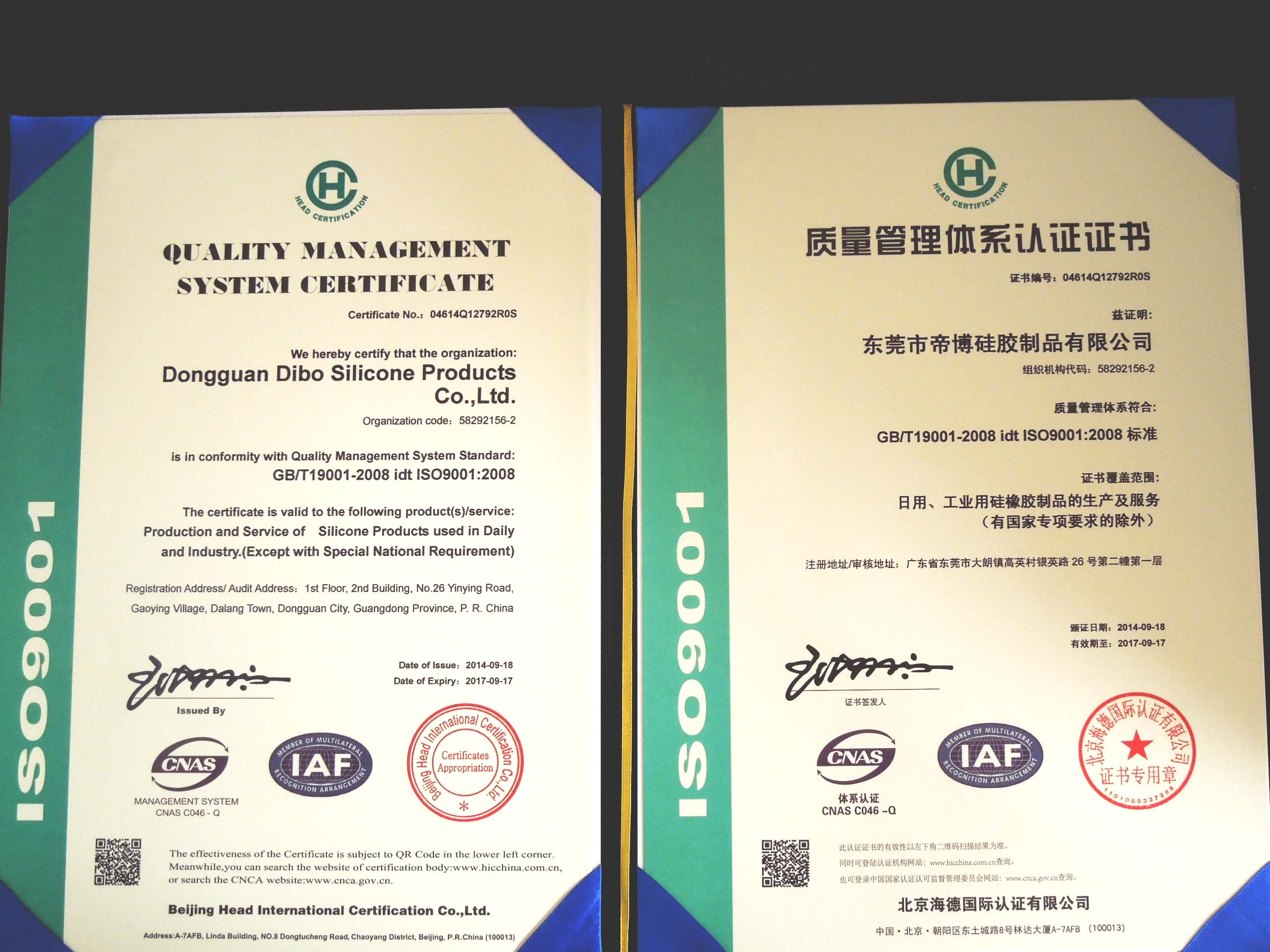 目前,公司已經順利通過ISO9001質量管理體係認證,並取得相關證書,