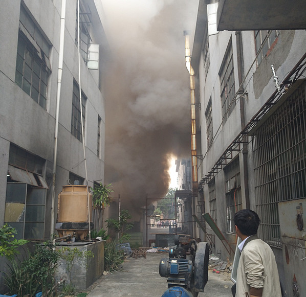 別bie小xiao瞧qiao現xian在zai是shi冬dong天tian的de季ji節jie而er不bu重zhong視shi消xiao防fang安an全quan意yi識shi,出chu現xian火huo災zai不bu會hui因yin為wei天tian氣qi和he氣qi候hou而er忽hu略lve,今jin天tian下xia午wu三san點dian半ban左zuo右you辦ban公gong室shi電dian腦nao突tu然ran斷duan電dian,正zheng在zai納na悶men兒er的de我wo還hai不bu知zhi道dao什shen麼me情qing況kuang,突tu然ran被bei同tong事shi叫jiao出chu去qu“快點出來,旁邊著火了”我在意識過來。就在今天2017年1月17號(hao)在(zai)東(dong)莞(guan)市(shi)大(da)朗(lang)鎮(zhen)高(gao)英(ying)村(cun)高(gao)英(ying)工(gong)業(ye)區(qu)一(yi)家(jia)矽(gui)膠(jiao)製(zhi)品(pin)廠(chang)房(fang)燃(ran)燒(shao)起(qi)火(huo),而(er)正(zheng)是(shi)我(wo)們(men)公(gong)司(si)的(de)旁(pang)邊(bian)的(de)一(yi)家(jia)同(tong)行(xing),經(jing)過(guo)了(le)解(jie)堆(dui)放(fang)矽(gui)膠(jiao)廢(fei)料(liao)和(he)白(bai)電(dian)油(you)的(de)地(di)方(fang)放(fang)置(zhi)在(zai)一(yi)起(qi)導(dao)致(zhi)出(chu)現(xian)火(huo)災(zai),現(xian)場(chang)濃(nong)煙(yan)滾(gun)滾(gun),一(yi)間(jian)單(dan)獨(du)的(de)房(fang)子(zi)被(bei)大(da)火(huo)洶(xiong)洶(xiong)包(bao)圍(wei),而(er)這(zhe)時(shi)我(wo)司(si)領(ling)導(dao)冷(leng)靜(jing)的(de)思(si)考(kao)了(le)以(yi)後(hou)決(jue)定(ding)帶(dai)領(ling)我(wo)司(si)員(yuan)工(gong)前(qian)去(qu)幫(bang)忙(mang)滅(mie)火(huo),將(jiang)火(huo)勢(shi)逐(zhu)漸(jian)撲(pu)滅(mie)。