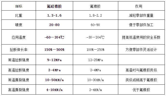 氟矽橡膠的性能對溫度的變化相對不敏感,氟矽橡膠在較寬的溫度範圍內,相對氟橡膠而言,更多地保持了彈性體的特性。