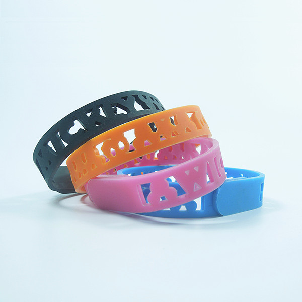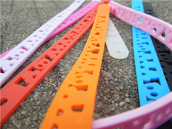 • 矽(gui)膠(jiao)手(shou)環(huan)具(ju)有(you)一(yi)定(ding)的(de)張(zhang)力(li)及(ji)柔(rou)軟(ruan)性(xing),手(shou)感(gan)舒(shu)適(shi),色(se)彩(cai)鮮(xian)豔(yan),環(huan)保(bao)對(dui)皮(pi)膚(fu)不(bu)會(hui)造(zao)成(cheng)傷(shang)害(hai),手(shou)環(huan)可(ke)以(yi)任(ren)意(yi)彎(wan)曲(qu)變(bian)形(xing)並(bing)立(li)即(ji)恢(hui)複(fu),是(shi)近(jin)幾(ji)年(nian)比(bi)較(jiao)流(liu)行(xing)促(cu)銷(xiao)禮(li)品(pin),具(ju)備(bei)耐(nai)磨(mo)損(sun)、耐高溫、不變形、無毒、無味,對人體無副作用等特點和柔軟、不開裂、使用壽命長、不刺激皮膚等優點,產品廉價,促銷禮品好,是綠色環保的矽膠飾品之一。
